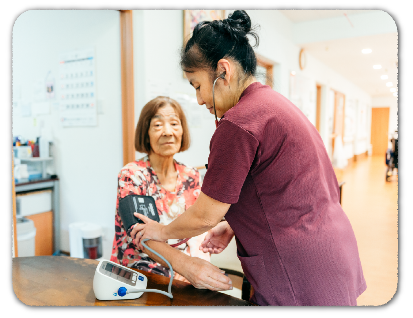 小規模多機能型居宅介護と契約することで、『デイサービス』『訪問介護』『ショートステイ』のサービスを組み合わせて一つの事業所で受けられる浦添市指定の地域密着型のサービスです。