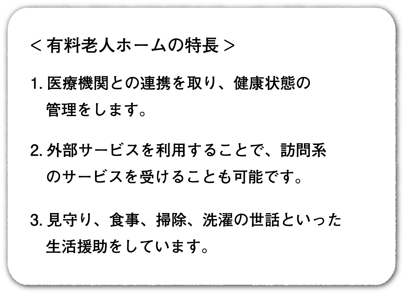 介護サービスが受けられる介護施設です。